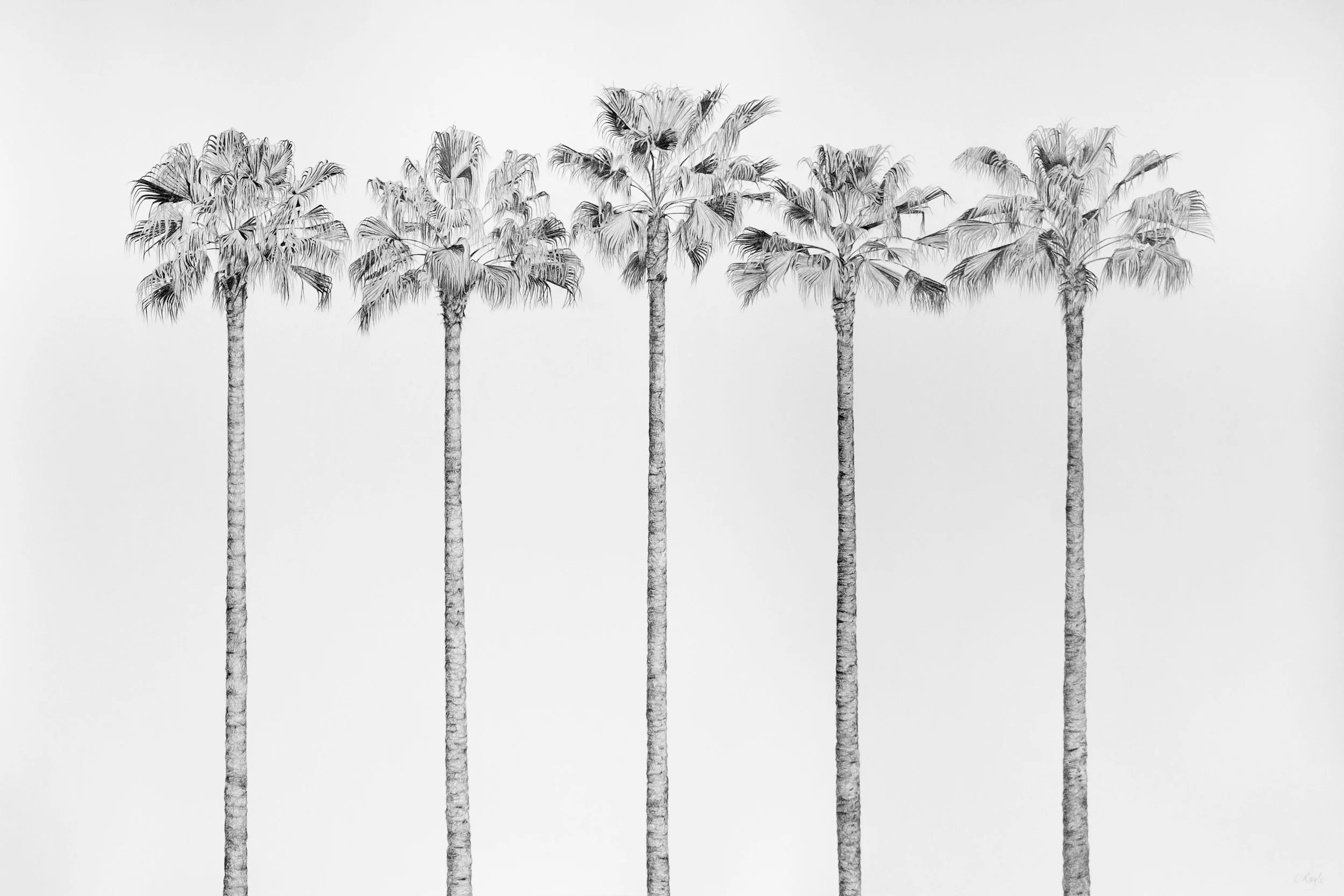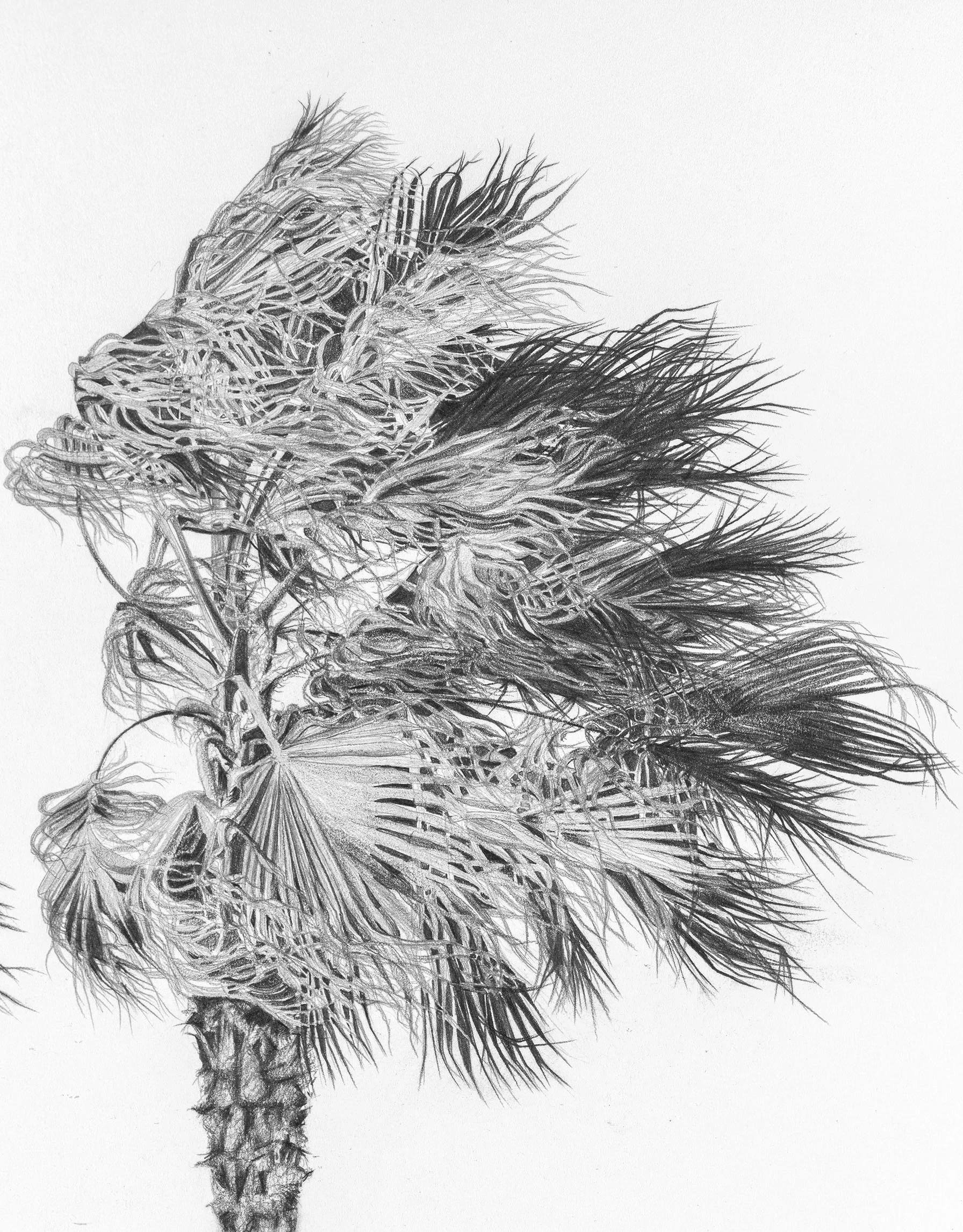 Questi disegni sono meticolosi registri non solo degli alberi e delle piante che crescono nel giardino delle Royle, ma anche di tutti quei corpi vegetali che catturano la sua attenzione ovunque lei si trovi. L’artista seleziona il suo soggetto, scatta alcune fotografie e infine porta i campioni nel proprio studio, dove può osservarli, assorbirli, concentrarsi e creare un rapporto con i sottilissimi dettagli riguardanti il colore o la forma che ogni pianta contiene. Questa attenta contemplazione visiva e tattile di ciascun corpo vegetale consente alla Royle di realizzare intricati studi a matita che celebrano le squisite forme organiche della pianta: le cortecce ruvide, i rami pendenti e una varietà infinita di minuscole foglie, fiori e strutture dei fusti. Non ci sono trucchi: soltanto la fiducia di una mano fluida che lavora insieme a un occhio amorevole e discernente per creare una serie di equilibrate composizioni, le quali vengono elaborate e contenute per rivelare una notevole gamma di tonalità e di texture. Centinaia di gentilissimi tratti di grafite e di segni astratti si intrecciano per creare, su una base di immacolata carta bianca, un’immagine finale, profondamente sensibile e armoniosa. Questi disegni ci chiedono di osservare più in profondità tutti quei ritmi straordinari e la vitalità propri del mondo vegetale, e di meravigliarci delle migliaia di forme e delle sfumature infinitamente sottili che ci circondano nel mondo naturale